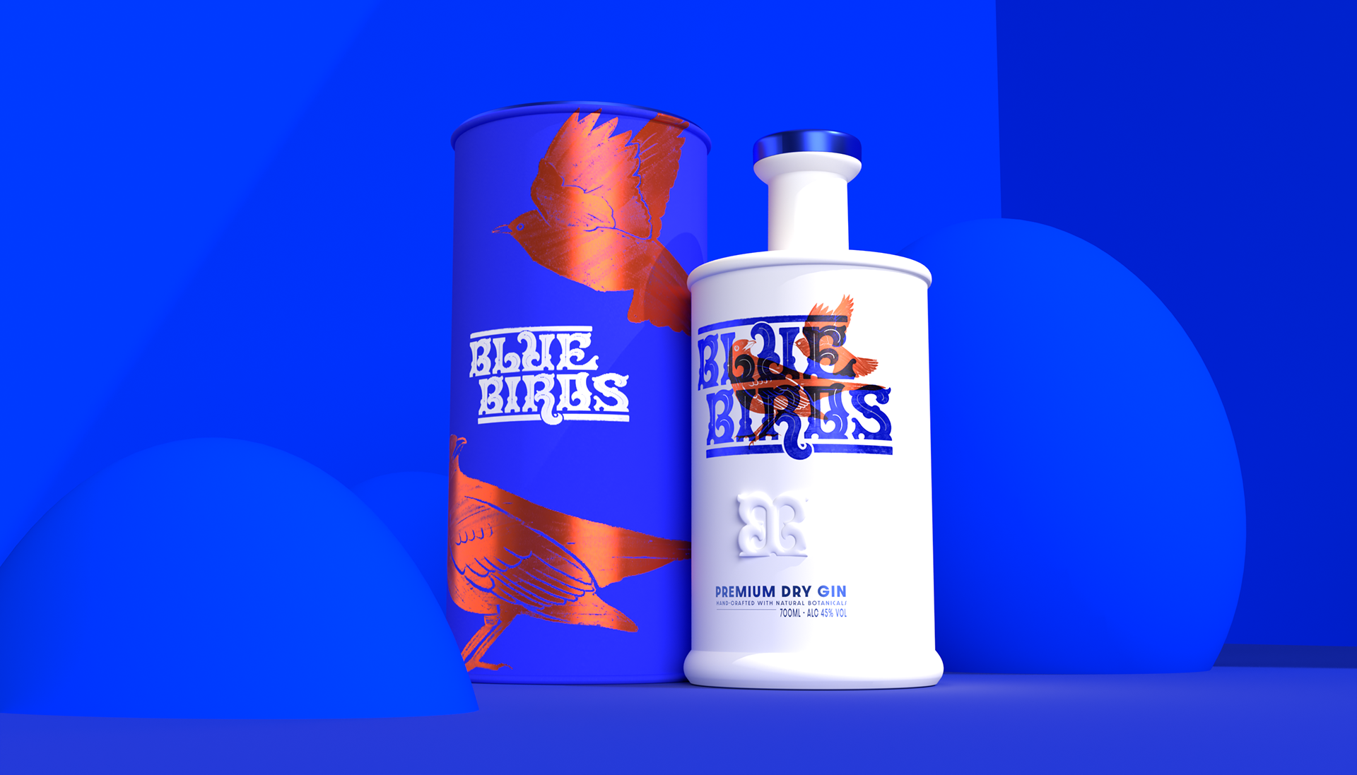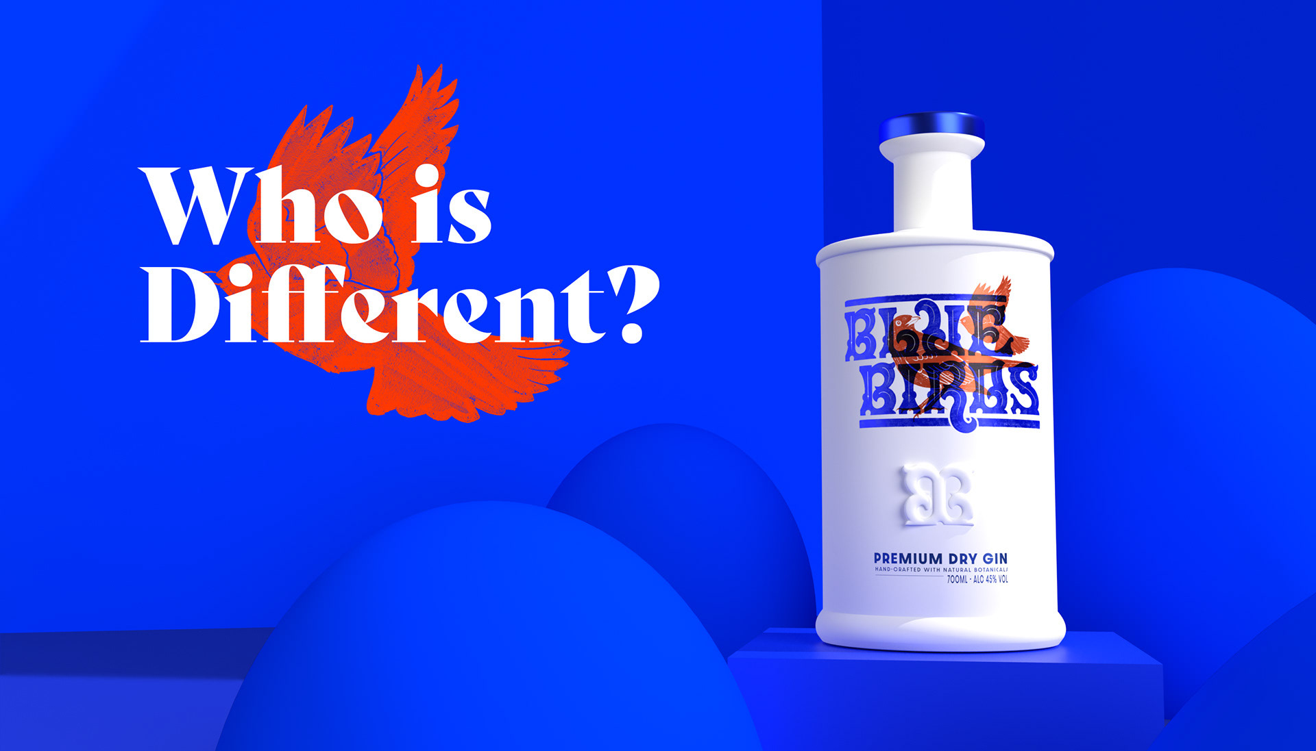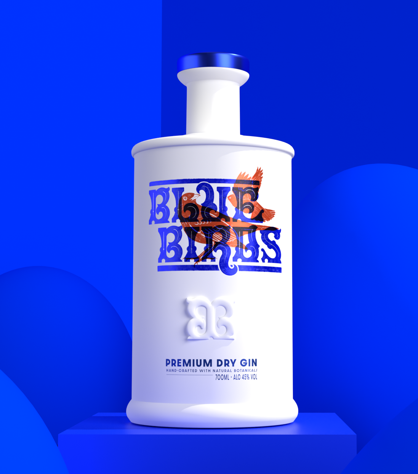 Blue Birds Gin allie tradition et modernité à travers un design éclatant et mémorable. Les couleurs vives évoquent la beauté naturelle des baies et le plumage des merles bleus, créant une atmosphère joyeuse et captivante. La typographie, épaisse et inspirée de la peinture en lettres traditionnelle, renforce l'authenticité artisanale de la marque, tout en ajoutant une touche de nostalgie. Chaque bouteille raconte l’histoire inspirante des merles bleus qui ont traversé des terres pour sauver les baies, transformées en un gin unique par un distillateur passionné. Blue Birds Gin est une invitation à célébrer la nature et le savoir-faire local, offrant une expérience à la fois visuelle et gustative.