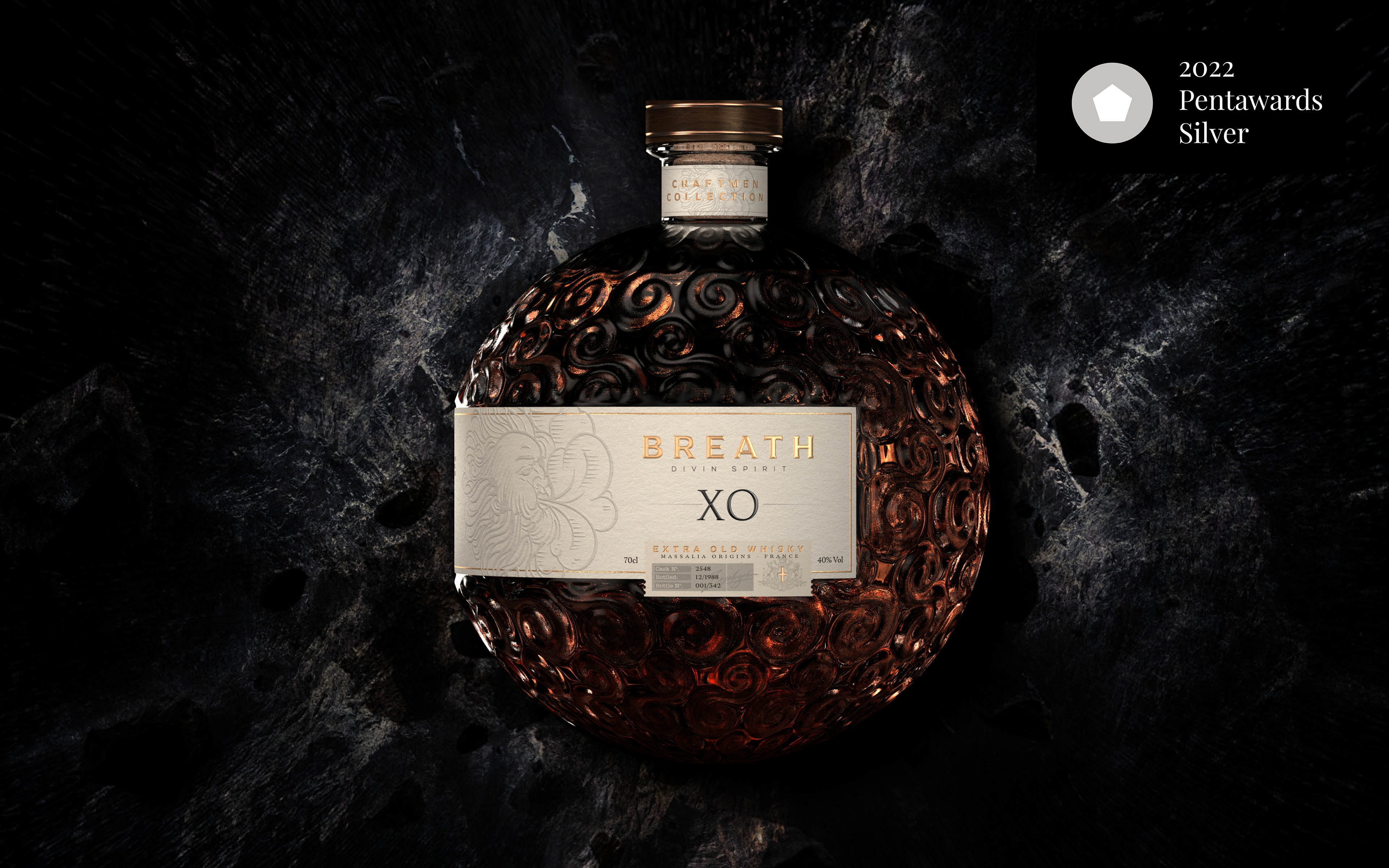Breath est une réflexion créative du studio, comme un instantané qui fige une inspiration présente. Il a pour but de présenter un renouveau de Zephyr, tant dans sa forme que dans ses aspirations. Mis au défi par l'idée de créer une bouteille ronde au design singulier, le studio s'engage à raconter une histoire forte en repoussant ses limites créatives. Trouver l'équilibre entre esthétique et signification, entre design et récit de marque, tel est le défi qui nous a animés lors du développement de ce projet.