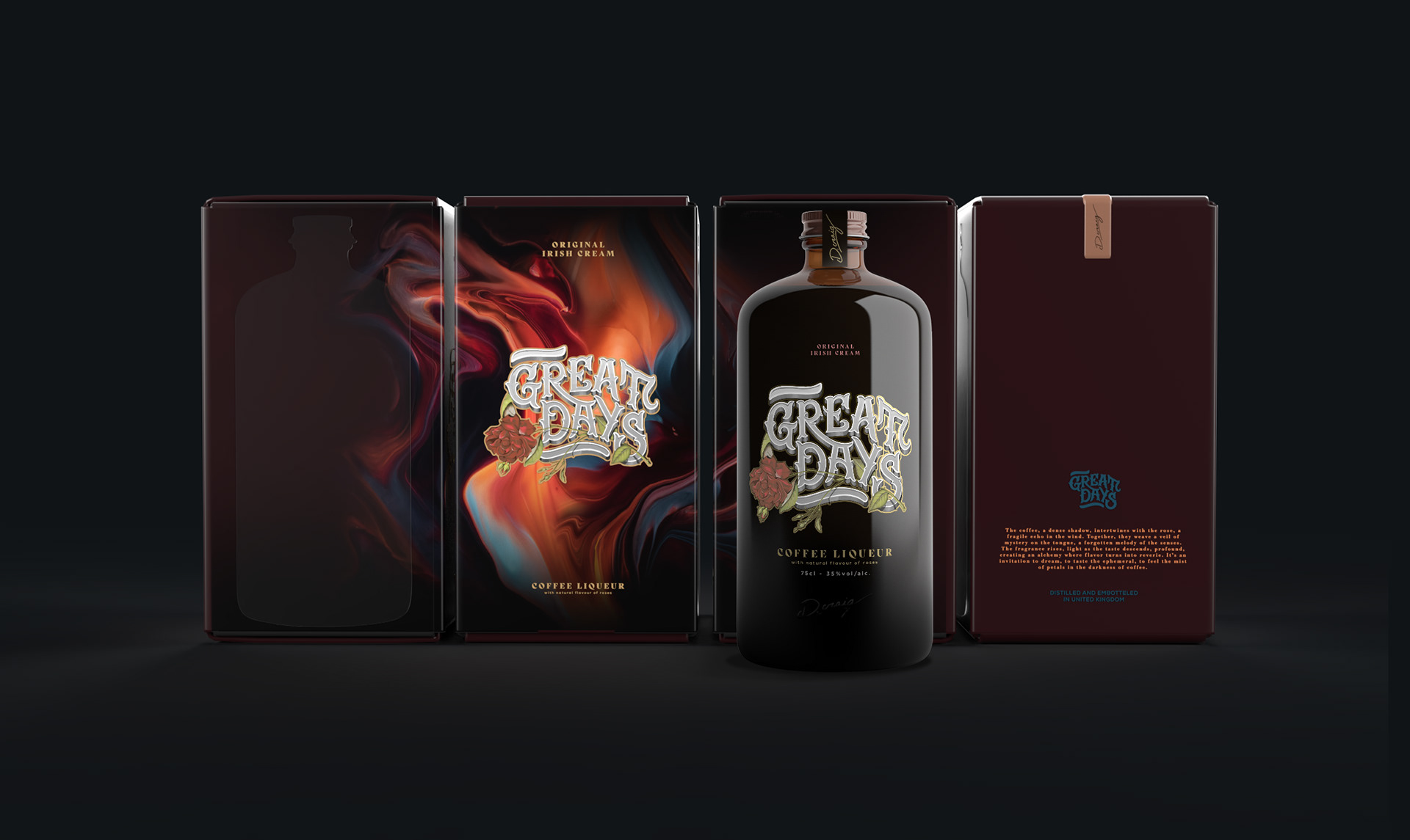 Great Days est un concept de marque innovant qui propose une liqueur de café unique, alliant le caractère intense du café à la douceur florale des arômes naturels de rose. Ce mariage audacieux est conçu pour offrir une expérience de dégustation nouvelle, surprenante et sophistiquée. Le branding, richement illustré, s’inspire de la beauté éphémère des grands jours, ces moments d’exception où saveurs et émotions s’entrelacent. Chaque détail du design vise à capturer cet équilibre délicat entre énergie et élégance, invitant à célébrer les plaisirs simples et exquis de la vie.