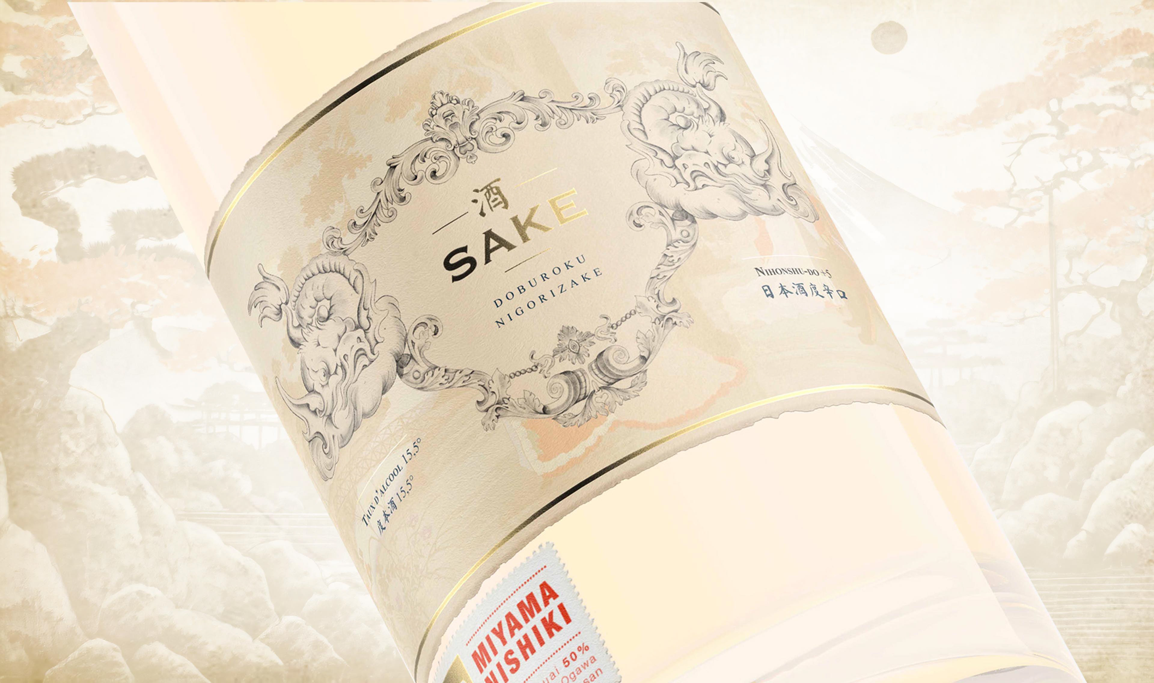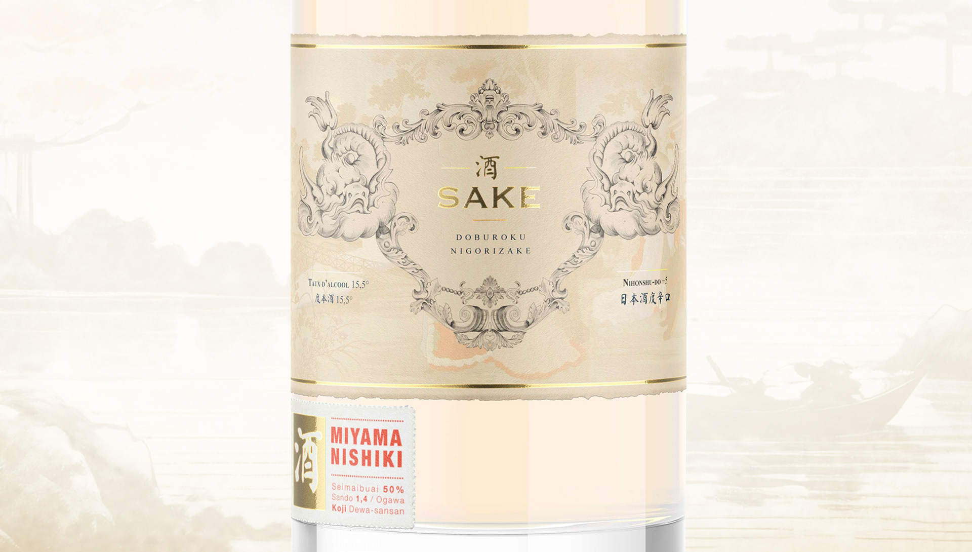 Pour la création de ce design, il était important de traduire graphiquement l’apparence trouble du “Doburoku”. La réalisation d'illustrations faites à la main, en utilisant différents types de crayons gris apporte de la douceur dans les lignes et les dégradés. L'illustration d'un poisson sur un nuage renforce cette idée, établissant le lien entre les éléments “eau” et “air”, tandis que la composition dessine également la tête d'un bœuf, un animal essentiel à la riziculture.